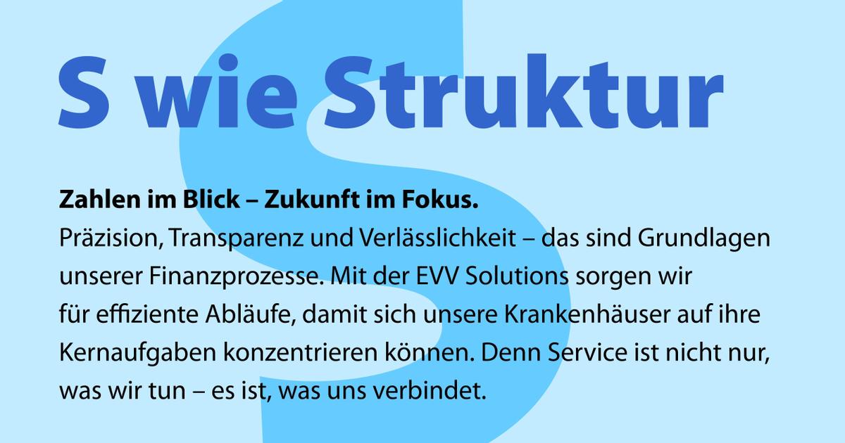 Die EVV Solutions GmbH ist eine hundertprozentige Tochtergesellschaft der Elisabeth Vinzenz Verbund GmbH mit Sitz in Berlin. Als Shared Services Center unterstützt sie die Einrichtungen des Verbundes in den Bereichen IT, Bau & Technik und Nachhaltigkeit sowie Finanzbuchhaltung. Ziel ist es, durch zentrale Dienstleistungen Effizienzgewinne zu realisieren, die Servicequalität zu steigern und die Einrichtungen in ihrem medizinisch-pflegerischen Kerngeschäft zu entlasten. Geschäftsführer sind Daniel Schönherr, Sebastian Wiedenhaupt und Florian Freytag.
