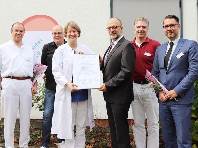 Das Krankenhaus Reinbek wurde in einer kleinen Feierstunde von vier Fachgesellschaften für seine vorbildliche Versorgung von Nierenpatienten durch Dialysezugänge mit einem Zertifikat als „Shunt-Referenzzentrum“ ausgezeichnet. Laudator Dr. Lutz Heischkel hatte das Interdisziplinäre Shunt-Zentrum Reinbek für die Zertifizierungsgesellschaft ClarCert als Auditor im Sommer überprüft. Der Leiter der Gefäßchirurgie am Werner Forßmann Krankenhaus (Eberswalde) sagte in seiner Rede: „Ein eindeutiger Marker einer hohen fachärztlichen Qualität in Reinbek ist der große Einweiserradius mit Entfernungen von bis zu 180 km. Das heißt Dialysepraxen aus Flensburg, Schwerin und Hannover schicken ihre Patienten zu den Experten ins Shunt-Zentrum nach Reinbek, weil die Ergebnisse gut sind.“
