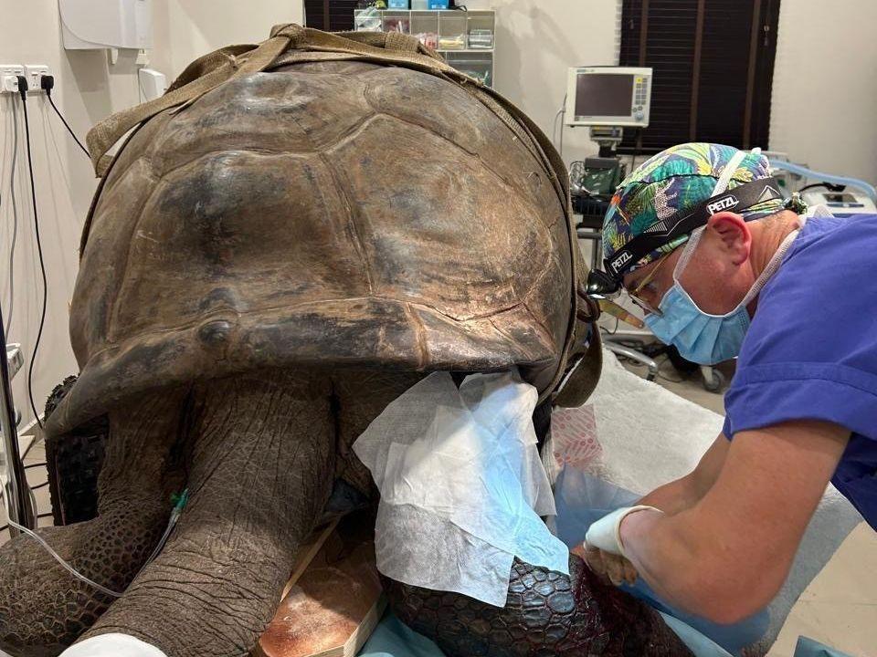 Riesenschildkröte George auf dem Weg zur Genesung