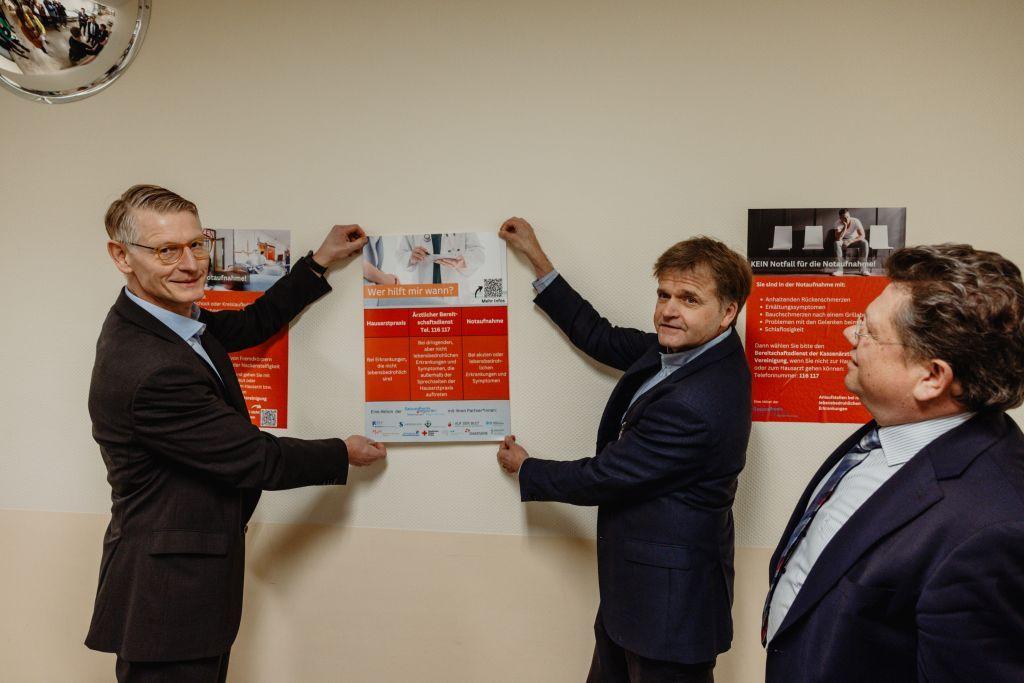 AG-Sprecher Dr. Jens Albrecht, Ärztlicher Direktor und Leiter der Notaufnahme im Vinzenzkrankenhaus Hannover, ergänzt: „Ich bin froh, dass es mit der Notfall-AG gelungen ist, sämtliche Akteure der Notfallversorgung in und um Hannover an einen Tisch zu bekommen, um die aus verschiedenen Gründen immer schwieriger werdende Situation der Notfallversorgung gemeinsam zu besprechen und nach Lösungsansätzen zu suchen. Allein im Vinzenz hatten wir in 2023 einen Anstieg von über 15 Prozent an Patientenkontakten in unserer ZNA – mit allen daraus erwachsenden Problemen. Ein sichtbarer Baustein der gemeinsamen Aktion für eine verbesserte Notfallversorgung ist die heute dargestellte Plakataktion.“ Das sieht auch Dr. Torben Brod, Ärztlicher Leiter der Zentralen Notaufnahme Medizinische Hochschule Hannover (MHH), so: „Um eine hochwertige Notfallversorgung auch in Zeiten zunehmenden knapper werdenden Personalressourcen sicherstellen zu können, ist eine enge Zusammenarbeit aller beteiligten Akteure entscheidend. Die AG ,Notfallversorgung‘ der Gesundheitsregion Region Hannover leistet hierzu einen wichtigen Beitrag.“