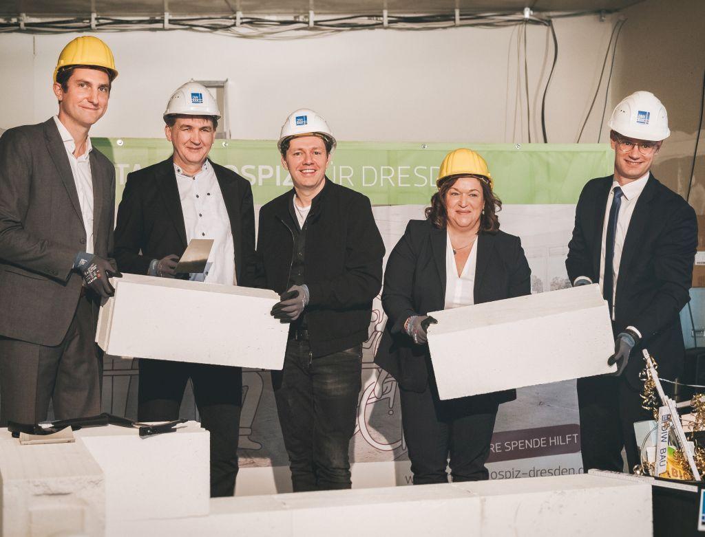 Der symbolische Baustart erfolgte im Beisein von Schirmherr Christian Friedel und der Vorsitzenden des Landesverbandes für Hospizarbeit und Palliativmedizin Sachsen e.V., Simone Lang