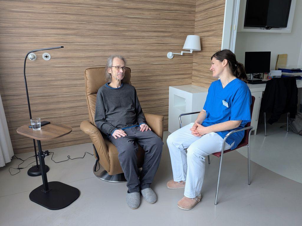 Aber nicht nur die Entlastung seiner Frau ist für Matthias M. ein großer Pluspunkt, die Tagesklinik ist für ihn auch ein Raum, in dem er sich mit all seinen Bedürfnissen gesehen fühlt: „Wenn ich einen Power Nap brauche, kommt die Physiotherapeutin eben eine Viertelstunde später. Das ist schon einmalig und für jeden in meiner Lage extrem wertvoll.“