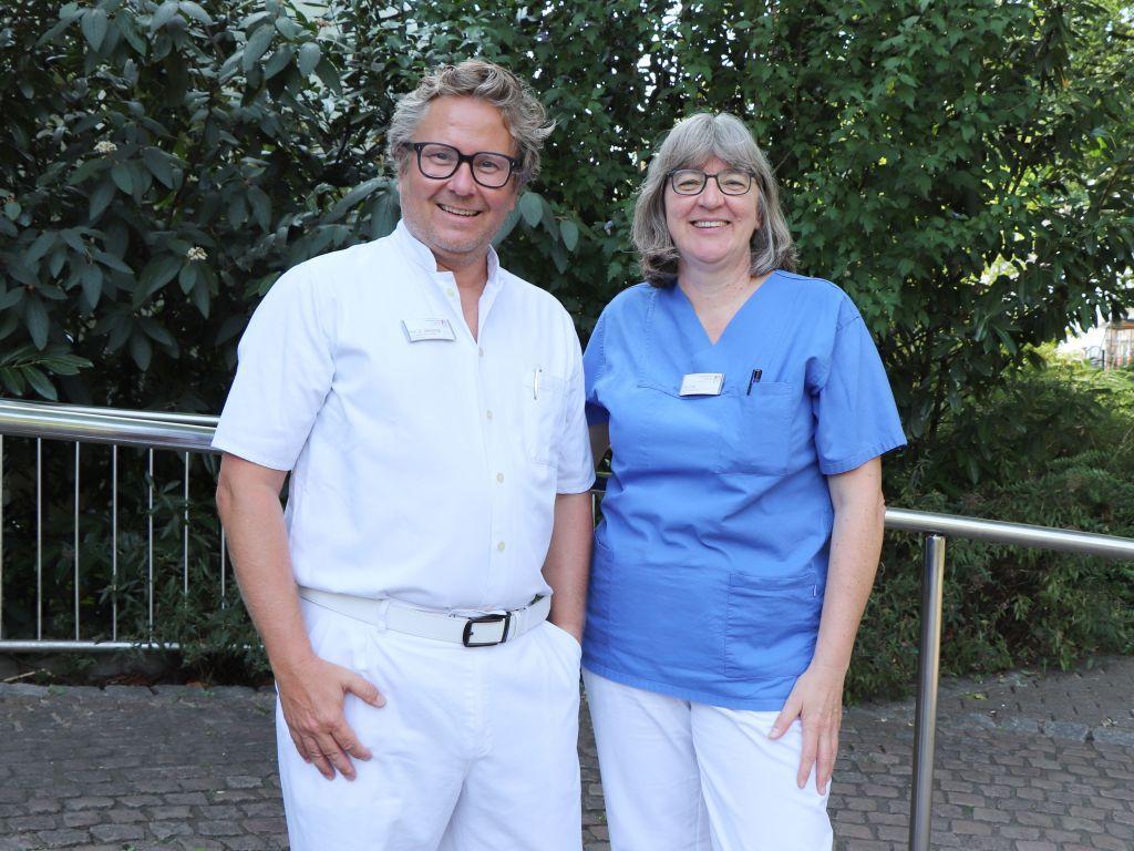 Mit dem Chefarztwechsel zum 1. Oktober wird auch eine neue organisatorische Ära eingeleitet. Dr. Bertschat: „Wir beide arbeiten seit vielen Jahren in Teilzeit und werden das in Absprache mit unseren Familien und der Krankenhausleitung auch als Chefärzte beibehalten. Jeder von uns hat einen freien Tag in der Woche, an diesem Tag entscheidet dann die beziehungsweise der andere die dringenden Themen. Darum haben wir uns auch als Leitungsteam beworben.“ Stephanie Dick führt aus: „An unserem freien Tag gönnen wir uns bewusst mehr Lebensqualität, nehmen uns Zeit für Familie und Freunde und ausgleichende Hobbys. Dieses Arbeitszeitmodell bieten wir übrigens auch unseren Mitarbeitenden an, da wir glauben, dass auch die jüngere Generation im Krankenhaus mehr Work-Life-Balance wünscht. Derzeit ist gerade eine Oberarztstelle und eine Assistentenstelle ausgeschrieben, bei der ebenfalls der Stellenumfang jeweils flexibel ist. An den Tagen, an denen wir gemeinsam in der Klinik sind, geben wir dann mehr als 100 Prozent.“