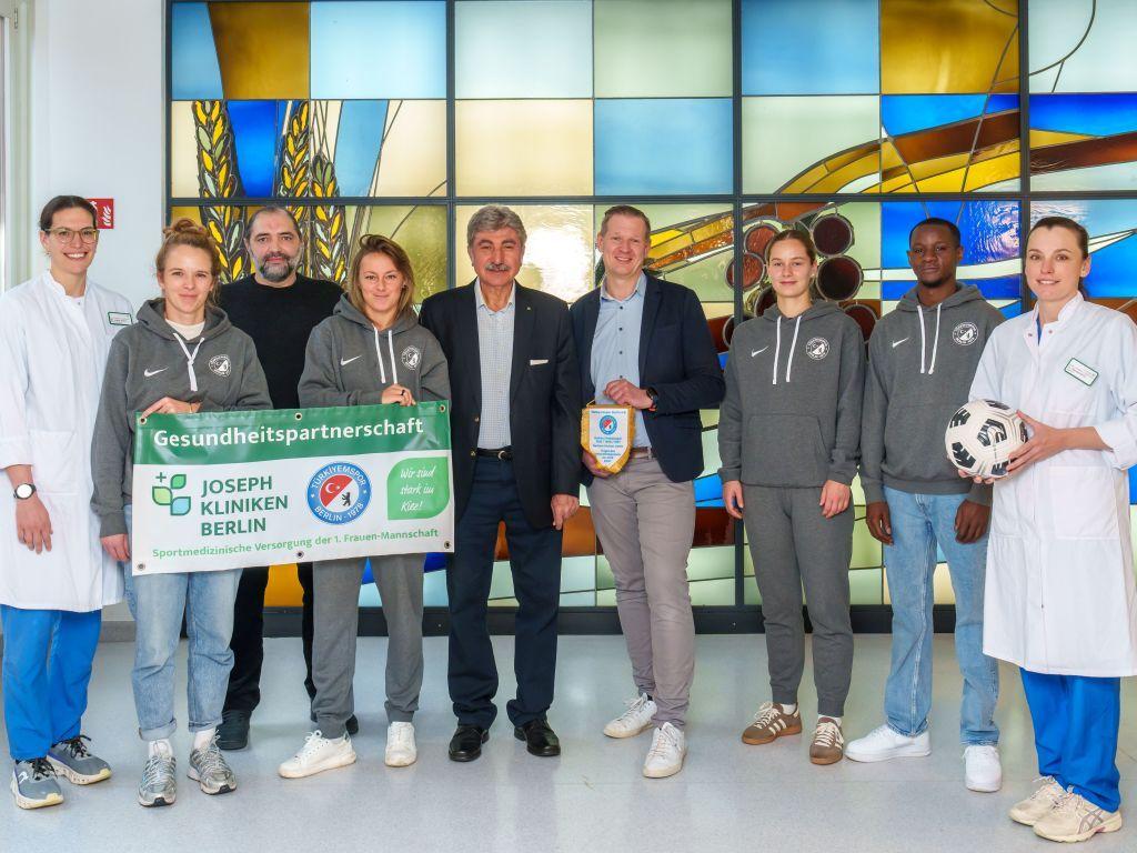 Das St. Joseph Krankenhaus unterstützt ab sofort das 1. Frauenfußballteam des Vereins Türkiyemspor Berlin 1978 e.V. als neuer Gesundheitspartner. Im Rahmen der Kooperation erhalten die Spielerinnen eine umfassende sportmedizinische sowie – im Bedarfsfall – orthopädisch-unfallchirurgische Diagnostik und Behandlung. Verantwortlich hierfür ist das Team um Chefarzt Dr. med. Ufuk Sentürk von der Klinik für Orthopädie und Unfallchirurgie des St. Joseph Krankenhauses.