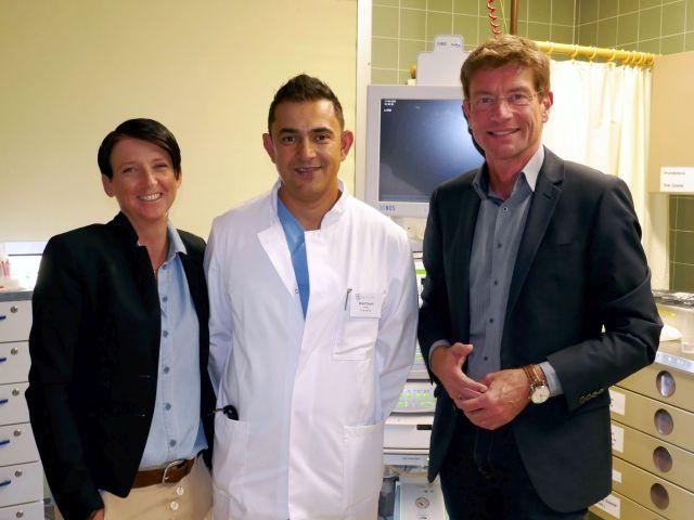 „Hier im Krankenhaus gibt es nun eine Ambulanz, in der wir unsere gastroenterologischen Patienten vor ihrem ambulanten oder stationären Aufenthalt bei uns auf die Behandlung vorbereiten.“ Auch eine tägliche Chef- beziehungsweise Oberarzt-Visite hat Daudi in den vergangenen Wochen für die stationären Patienten etabliert. Zudem möchte der neue Chefarzt das Leistungsspektrum der Gastroenterologie um eine neue Untersuchungs- und Therapiemethode erweitern. Mittels der Endosonographie soll es künftig möglich sein, mit Hilfe einer Sonde und eines Schallkopfes Ultraschallaufnahmen aus dem Inneren des Körpers anzufertigen. So können Organe abgebildet werden, die mit einem herkömmlichen Ultraschallgerät nur schwer darzustellen sind, zum Beispiel die Bauchspeicheldrüse oder die Lymphknoten. Mit Hilfe der sogenannten Feinnadel-Punktion können aus diesen Organen auch Gewebeproben entnommen werden, die anschließend im Labor auf krankhafte Veränderungen untersucht werden.